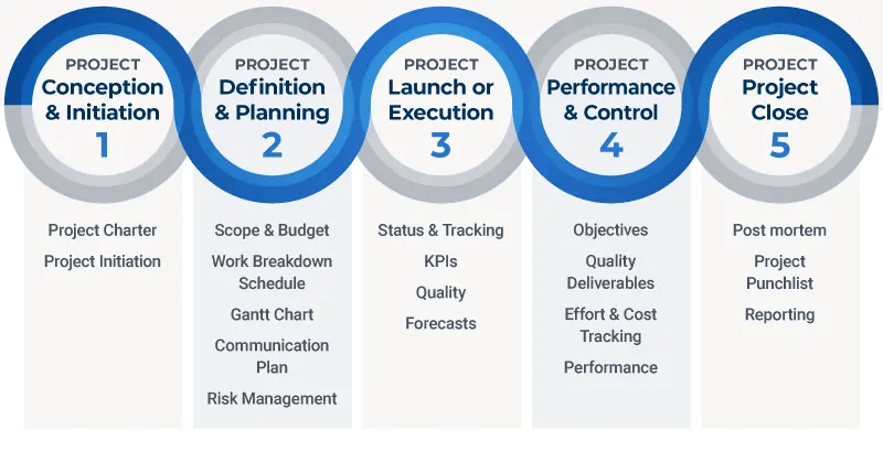 En un proyecto de construcción, estas son las fases de la gestión de proyectos: