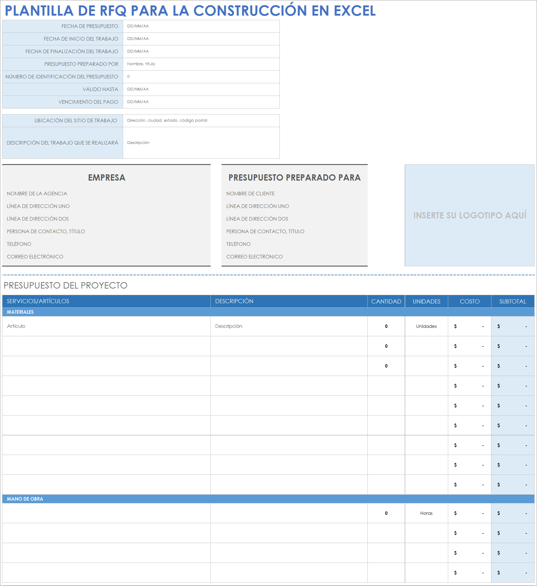 Cuándo usar esta plantilla: Utilice esta plantilla de RFQ de construcción para solicitar detalles de precios a los proveedores durante el proceso de licitación de un proyecto de construcción.