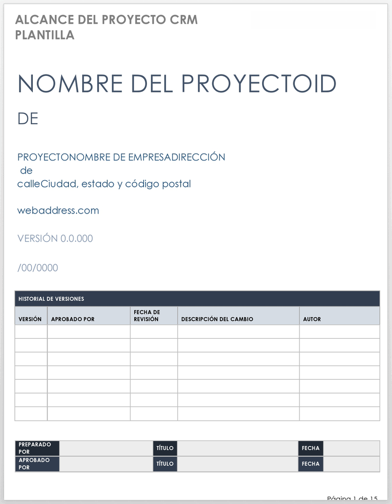 Plantilla de alcance de proyecto de gestión de las relaciones con los clientes
