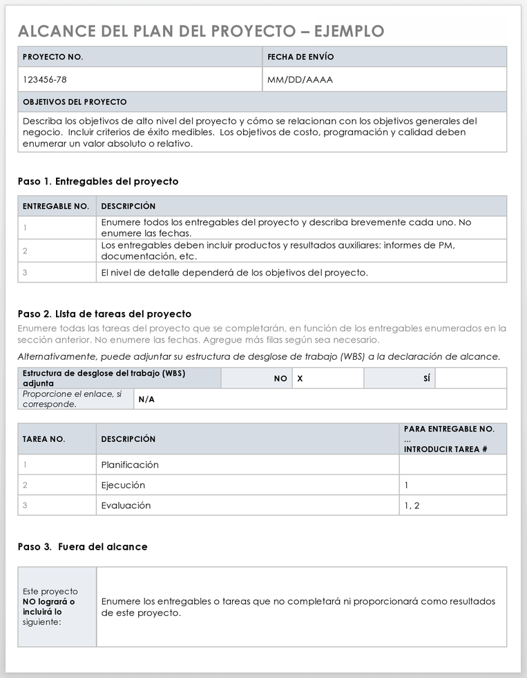 Descargar Ejemplo de alcance de plan de proyecto - Word