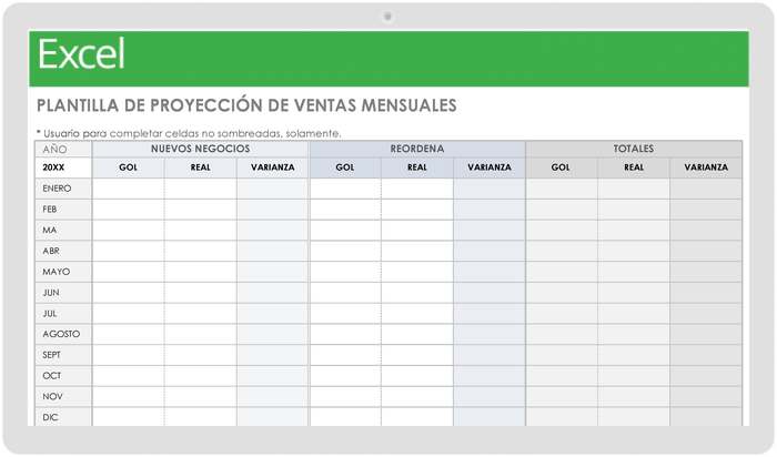 Descargar una plantilla de previsión de ventas a 12 meses para