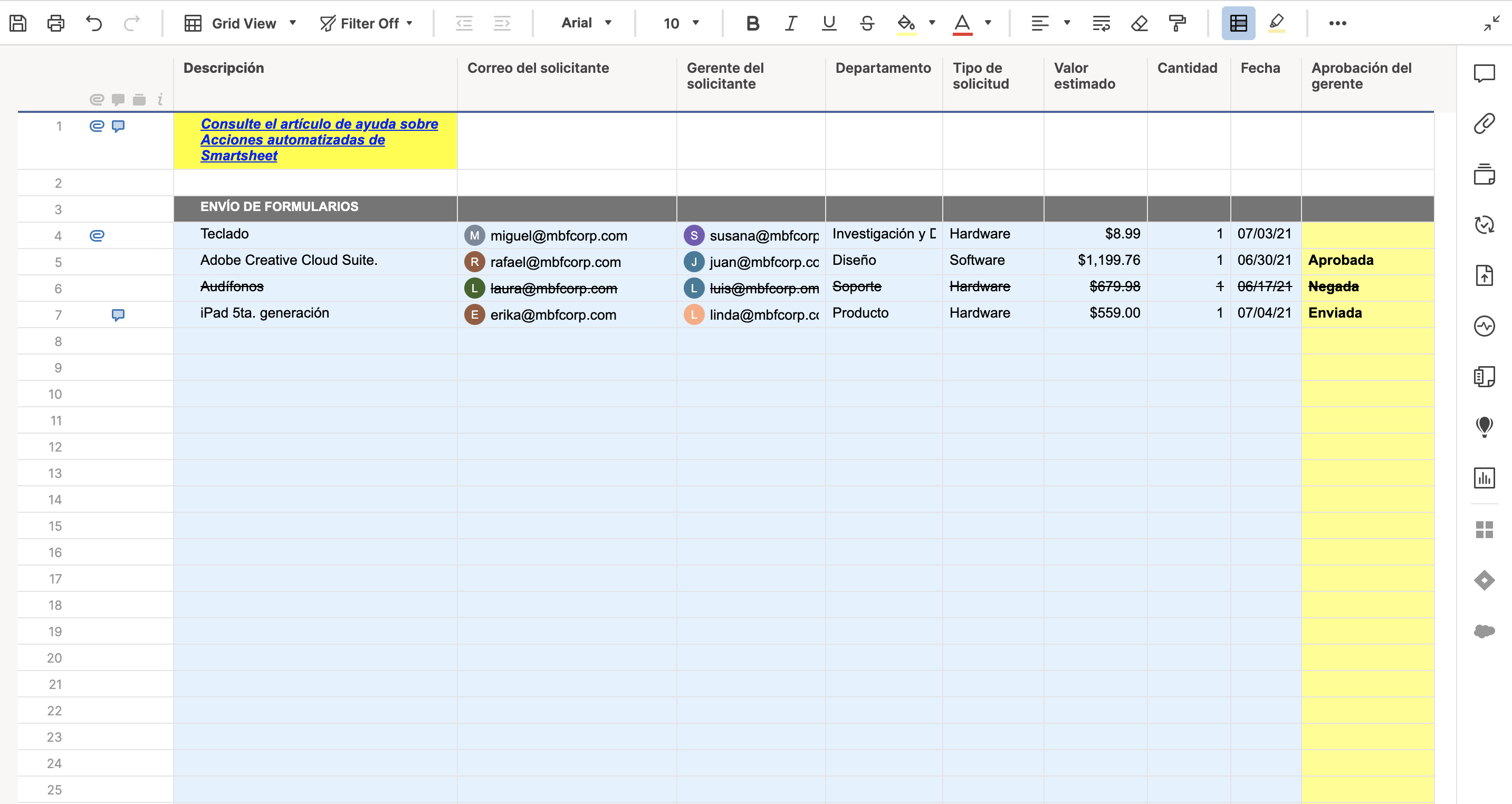 - Automatice su proceso para aprobar solicitudes de compra sobre un valor establecido